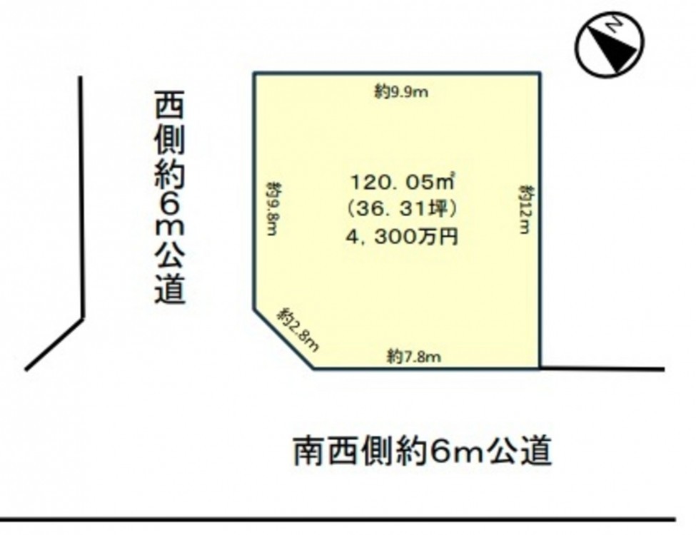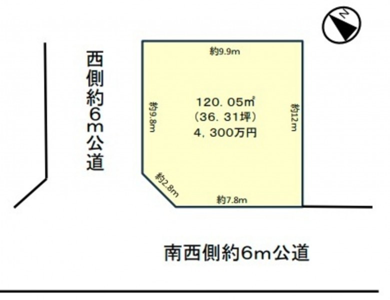 南西側 公道6m 間口約7.8m