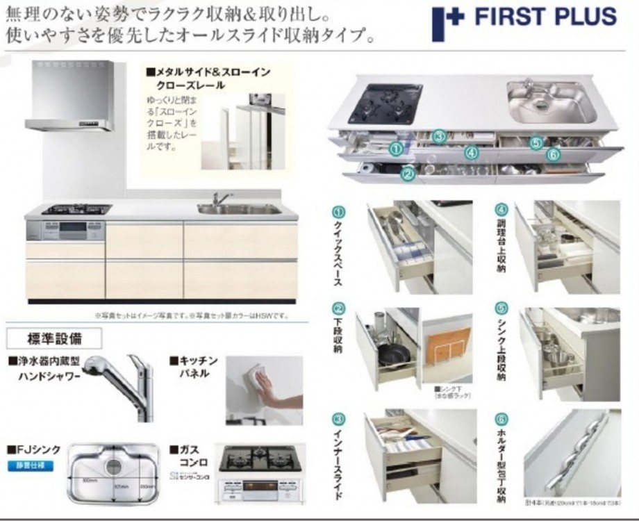 - システムキッチン、カウンターキッチン、食器洗浄乾燥機、洗浄便座、浴室乾燥機、追い焚き、複層ガラス、ウォークインクローゼット、モニタ付インターホン、駐車場2台分、床下収納、トイレ2箇所