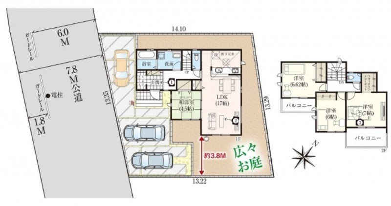 ◆間口13.3mで駐車はラクラク